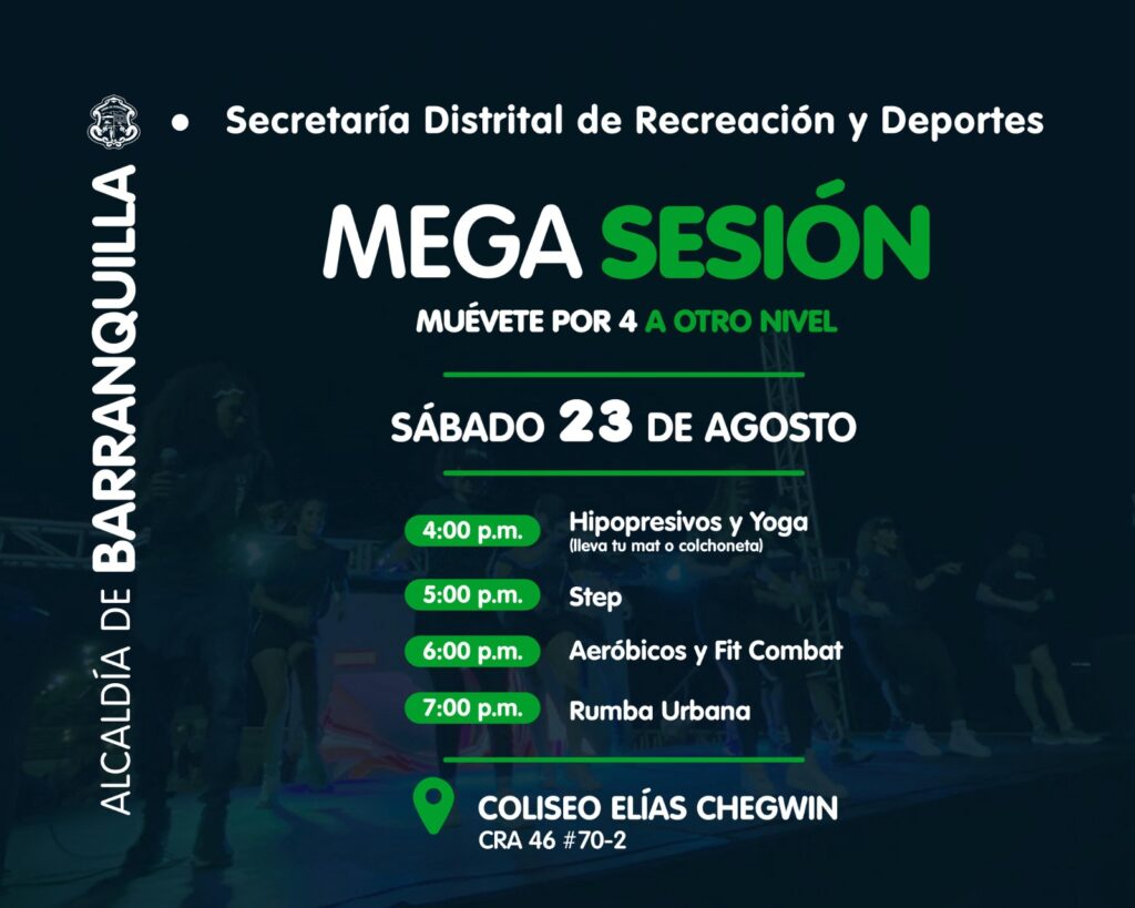 La agenda cerrará el sábado 23 de agosto, a las 4:00 p. m., con una Megasesión en el Coliseo Elías Chegwin. Allí la comunidad podrá disfrutar de disciplinas como hipopresivos, yoga, step, aeróbicos, fit combat y rumba urbana.