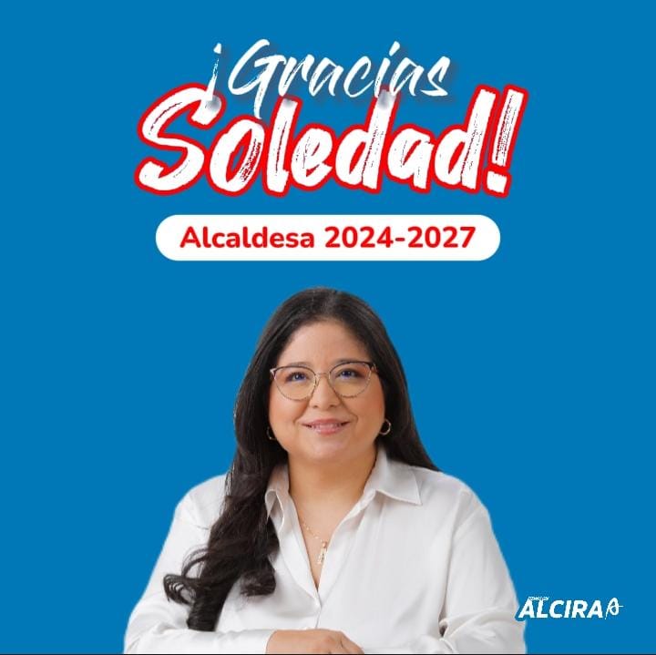 La alcaldesa electa señala que asumirá sus funciones agradeciendo a Dios y a todo su equipo de colaboradores de la coalición “Estamos con Alcira”, a los concejales, líderes, medios de comunicación y a todo el pueblo soledeño por el respaldo brindado durante todo este tiempo de campaña.