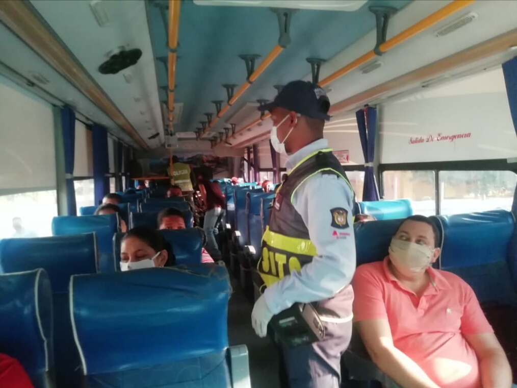 Funcionarios del instituto, apoyados por la Policía de Carreteras, asisten a los diferentes municipios desde donde se despachan buses hacia Barranquilla, para verificar que cumplan con la disposición de viajar con cupo completo, con las distancias permitidas y que los pasajeros usen tapabocas